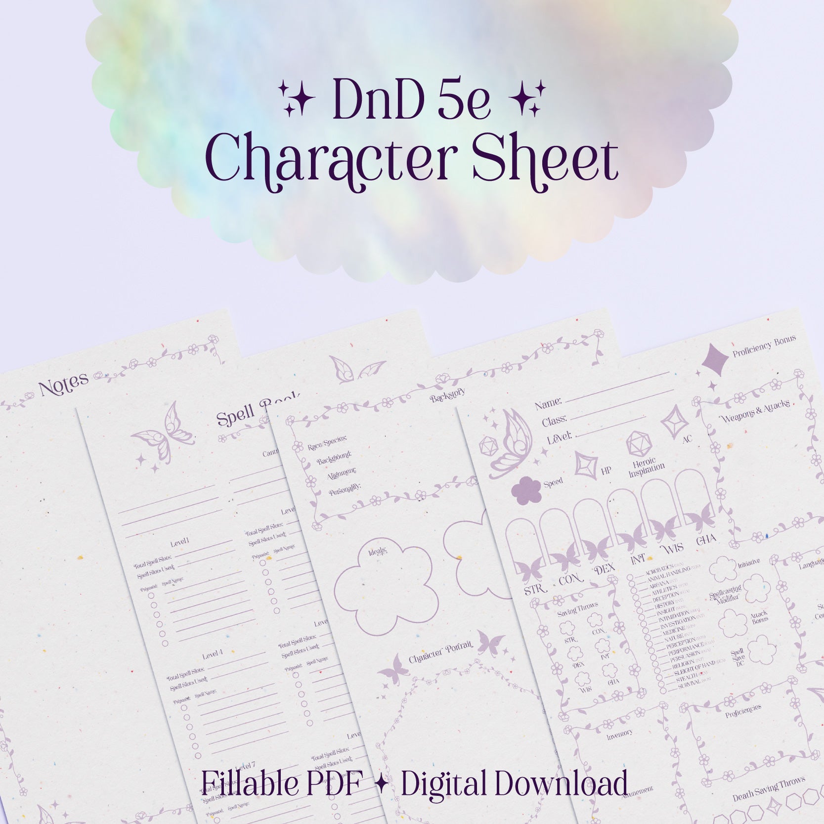 Character Sheet • Fairy • Digital Download • Fillable PDF