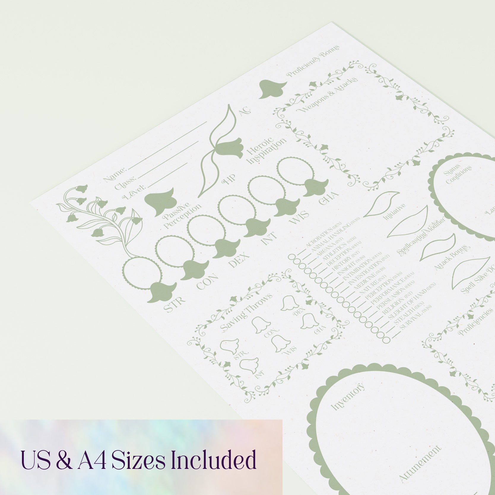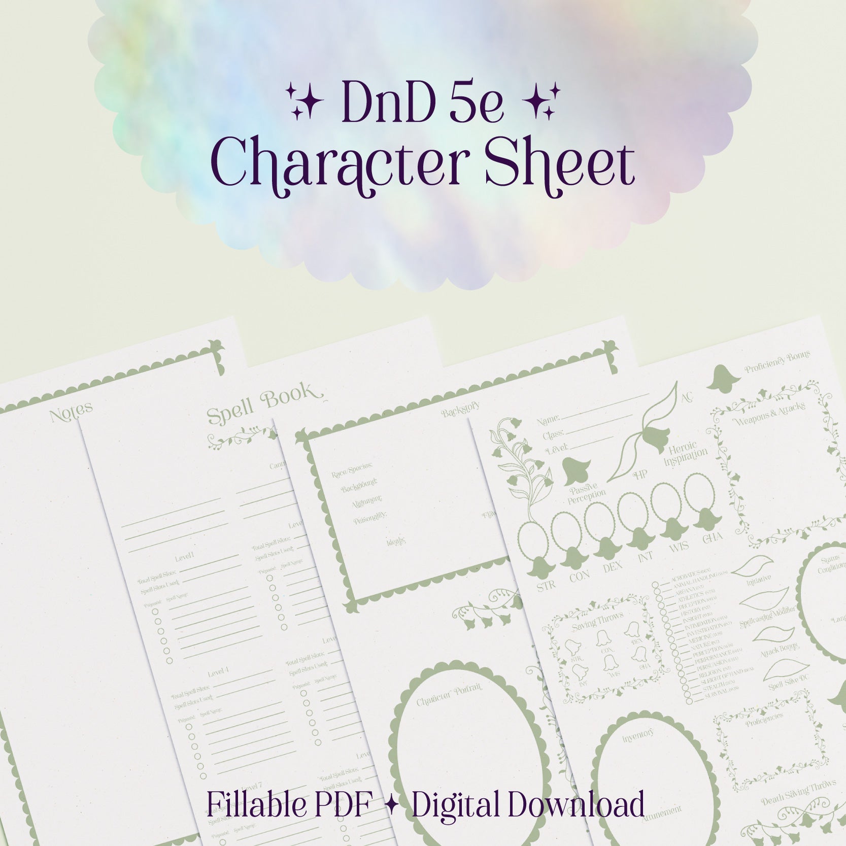 Character Sheet • Lily of the Valley • Digital Download • Fillable PDF