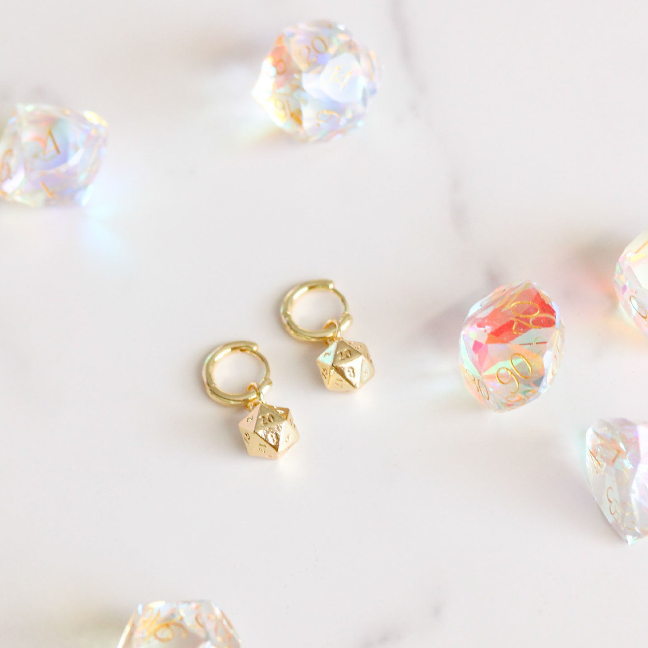 Add a little adventurer energy to your everyday look with our Dainty D20 Dangles—petite huggie hoop earrings featuring tiny D20 charms for a subtle, stylish nod to your favorite tabletop games.